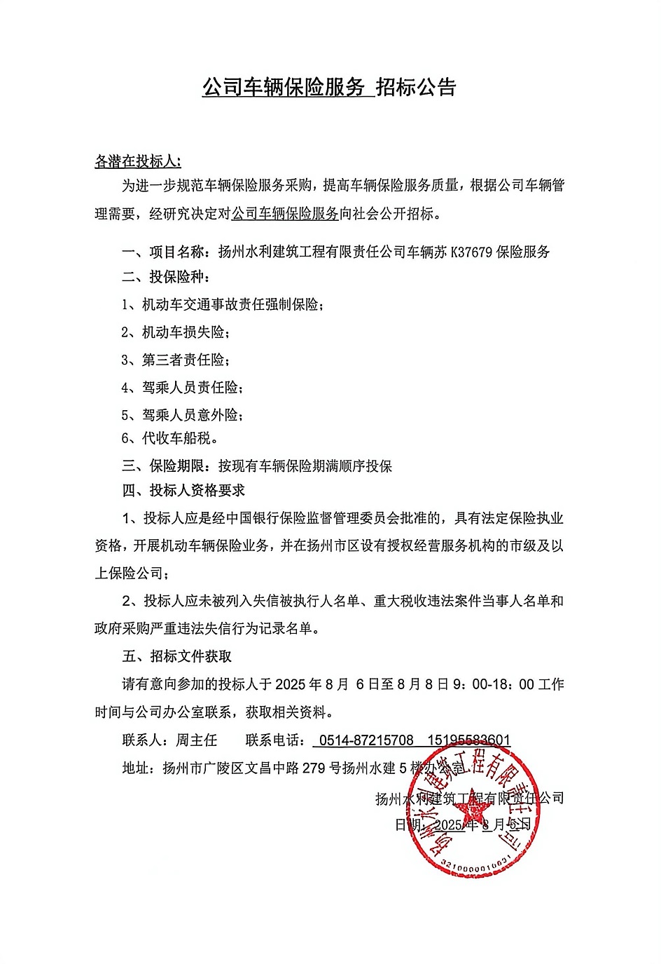 公司车辆保险服务招标公告