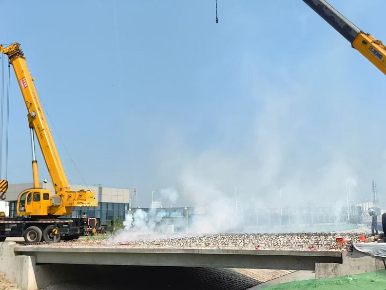 2025年8月21日,在星空在线注册(中国)官方网站-注册登录承建的扬州经济技术开发区长江运河交汇区(西南片)防洪除涝能力提升一期项目施工Ⅰ标现场,随着棒杰二期东门桥最后一片16m长预应力梁板稳稳落在桥台支座上,标志着项目首座桥梁梁板架设圆满完成,为项目按期完工奠定了坚实基础。