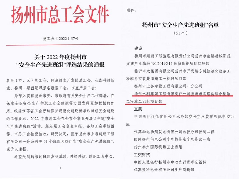 近日,市总工会发文表彰了2022年度市“安全生产先进班组”,星空在线注册(中国)官方网站-注册登录乌塔沟综合整治施工VI标项目部在此次评选中脱颖而出,被授予该项荣誉称号。