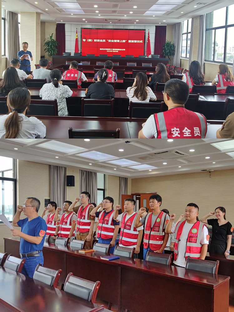 为进一步树牢安全发展理念,强化安全隐患排查治理,充分发挥基层管理人员在安全生产中的监督检查作用,提高管理效能,7月28日下午,星空在线注册(中国)官方网站-注册登录举行“安全臂章上膀”暨集体宣誓仪式,公司分管负责人、相关部室负责人、专兼职安全员代表参加活动。