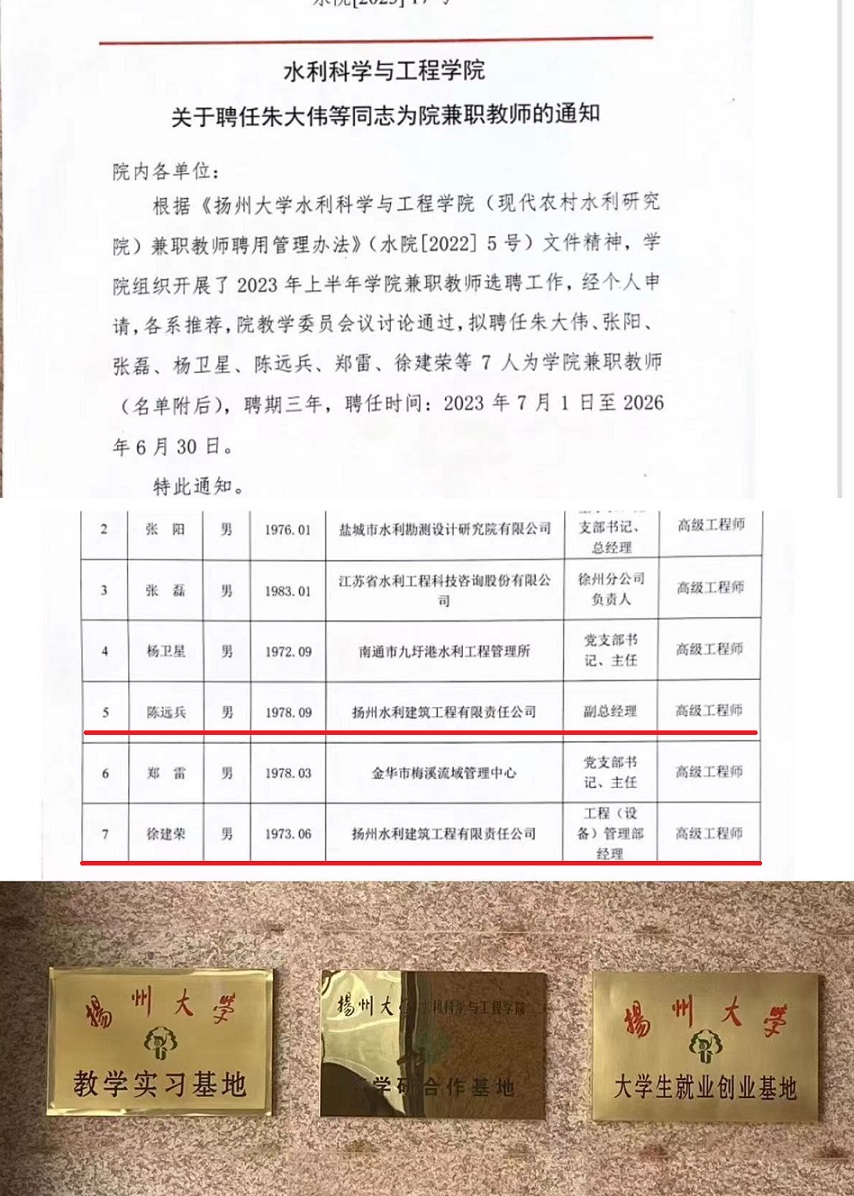 校企合作再深入 协同育人结硕果 ——公司两名同志受聘为扬大水利学院兼职教师